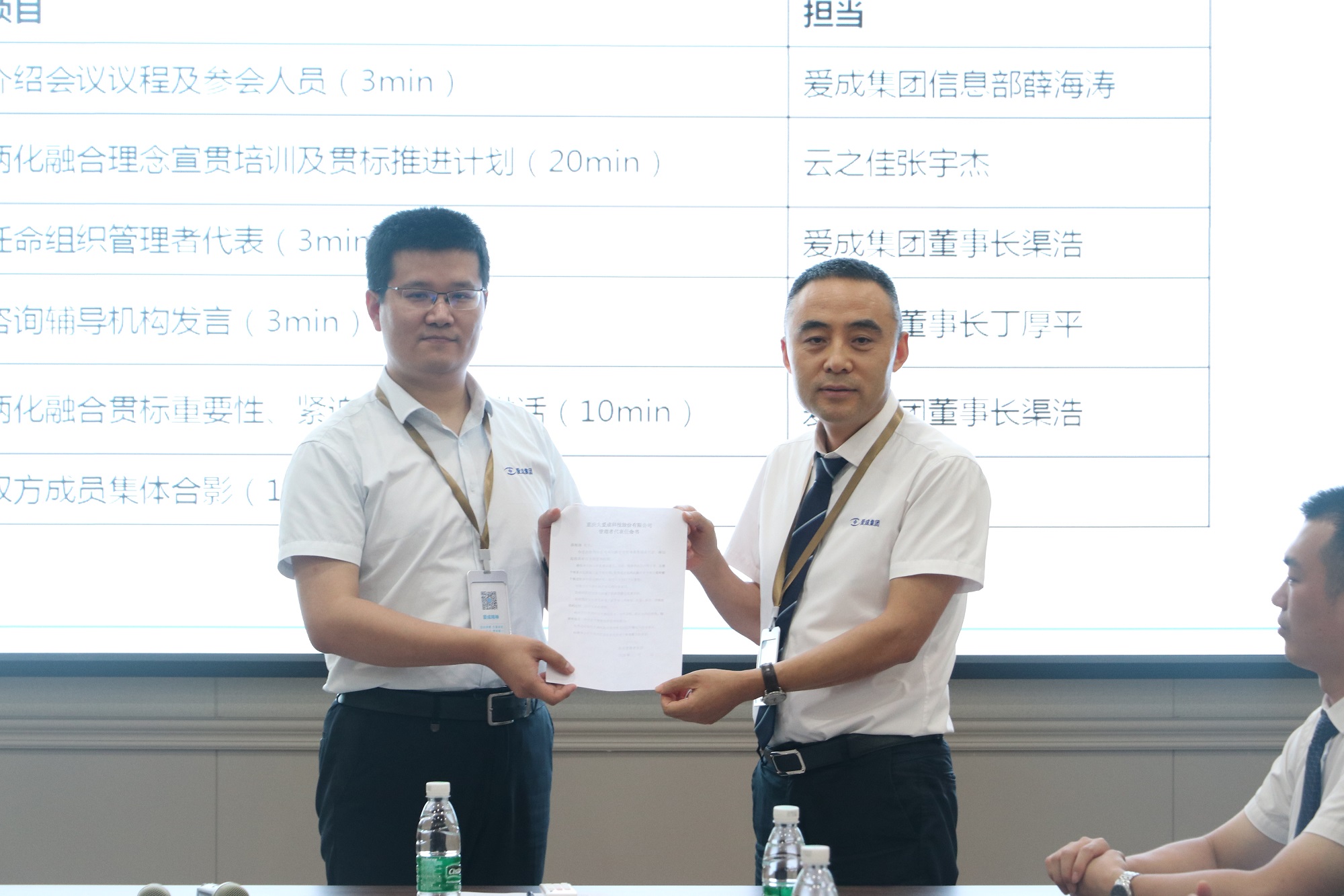 爱成集团董事长渠浩给管理者代表薛海涛颁发任命书