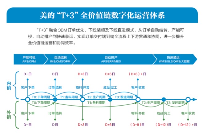 2015年,美的在洗衣机事业部试点“T+3”模式,获得了初步成效。2016年,“T+3”模式在整个集团全面推广。