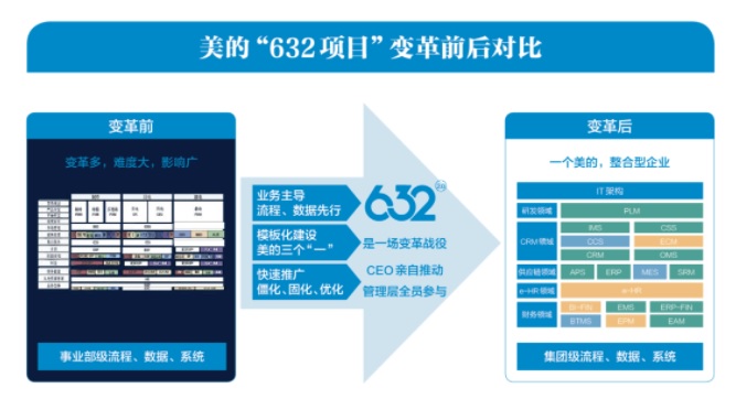 但是,“632项目”不只是更换IT系统,而且是一次企业变革,美的要实现三方面的一致性。