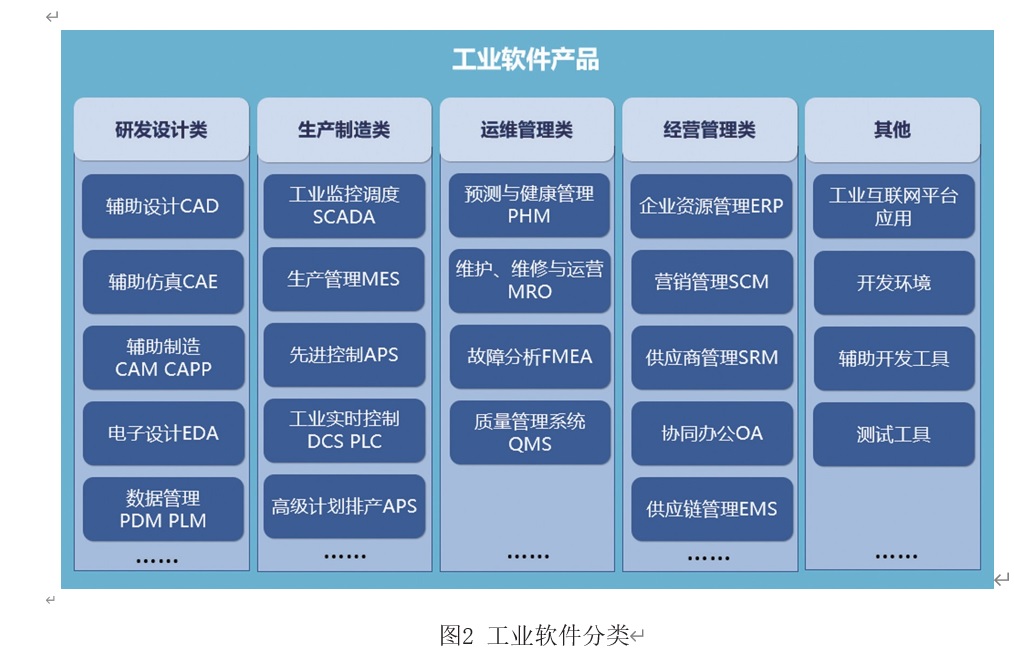 5) 其它类软件,是支持企业内和企业间系统集成的平台类软件,以及支撑工业软件研发和测试的工具软件,主要目的是支持协同研发、智能生产和服务等能力。