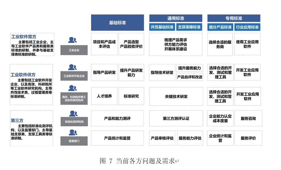 工业软件需方主要包括运用工业软件完成产品研发、生产制造、经营管理、服务运维等自身业务的各类企业,是产品类、服务类标准的主导方,并参与其它标准的研制。