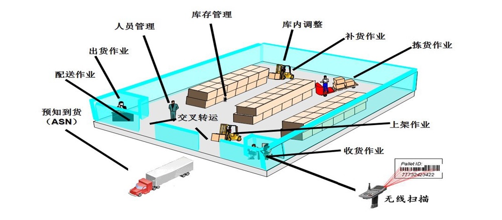 3、云之佳WMS数字化仓储管理系统全面支持各业务环节的条码扫描(RFID): 收货(根据入库单,执行入库收货作业)、上架(已入库收货的货品,执行上架作业)、分拣(出库作业时,根据拣选单,执行分拣作业)、 装箱(根据拣选的货品,执行验货装箱作业)、发货(根据装箱的箱号执行发货/出库作业)、移库(根据扫描的移入移出货位上的货品,执行移库作业)、补货(根据补货单,执行补货作业)、 盘点(根据盘点单,执行盘点作业)、库存查询(可以扫描货位货品查询库存信息)等,全面提高作业效率和作业准确性。